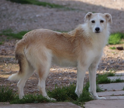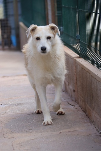 Esta menina é uma cadela de porte médio, muito tímida, que precisa de tempo para ganhar confiança e se sentir segura.