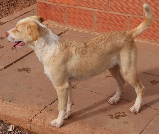 Este menino é um cão de porte médio, muito meigo, simpático e brincalhão, sempre pronto para momentos de interação e carinho.