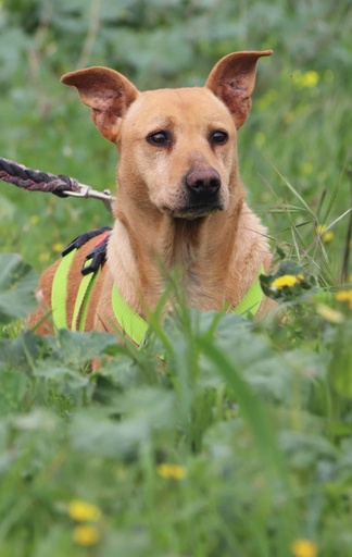 Tem um companheiro de box, pelo que está habituada à companhia de outro cão.